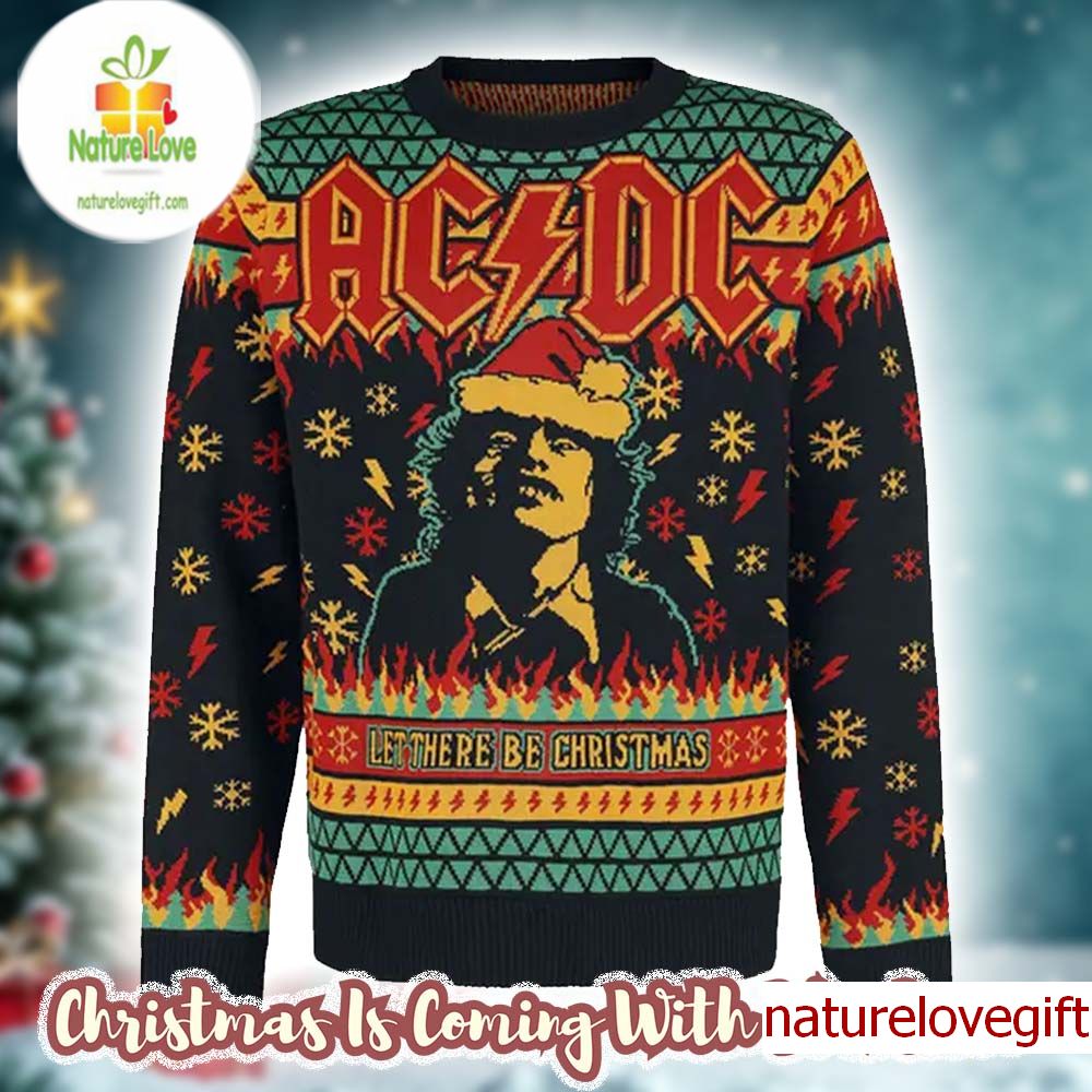 Embrace the festive spirit with our ACDC Angus Young Let There Be Christmas Thunder And Snowflakes Pattern Ugly Christmas Sweater! This unique piece combines rock 'n' roll flair with holiday cheer, featuring a striking design that showcases snowflakes swirling around electric guitars, perfectly capturing the joy of the season.Crafted for those who appreciate both music and merriment, this sweater is perfect for holiday gatherings, family parties, or cozy nights by the fire. Imagine yourself wearing this eye-catching apparel as you sip hot cocoa and belt out your favorite ACDC tunes, bringing a touch of vintage rock to your Christmas celebrations.Whether you're gifting it to a fellow music lover or adding it to your own collection, this sweater is a bold expression of nerd humor and festive fun. Don’t miss the chance to rock around the Christmas tree—grab yours today and make this holiday season unforgettable!
