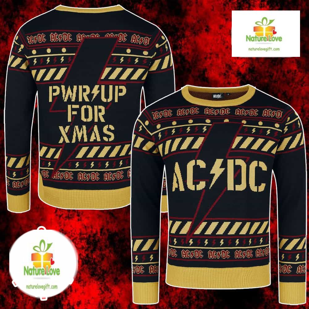 ACDC Christmas Jumper Black Gold Lightning Bolt Holiday Sweatshirt