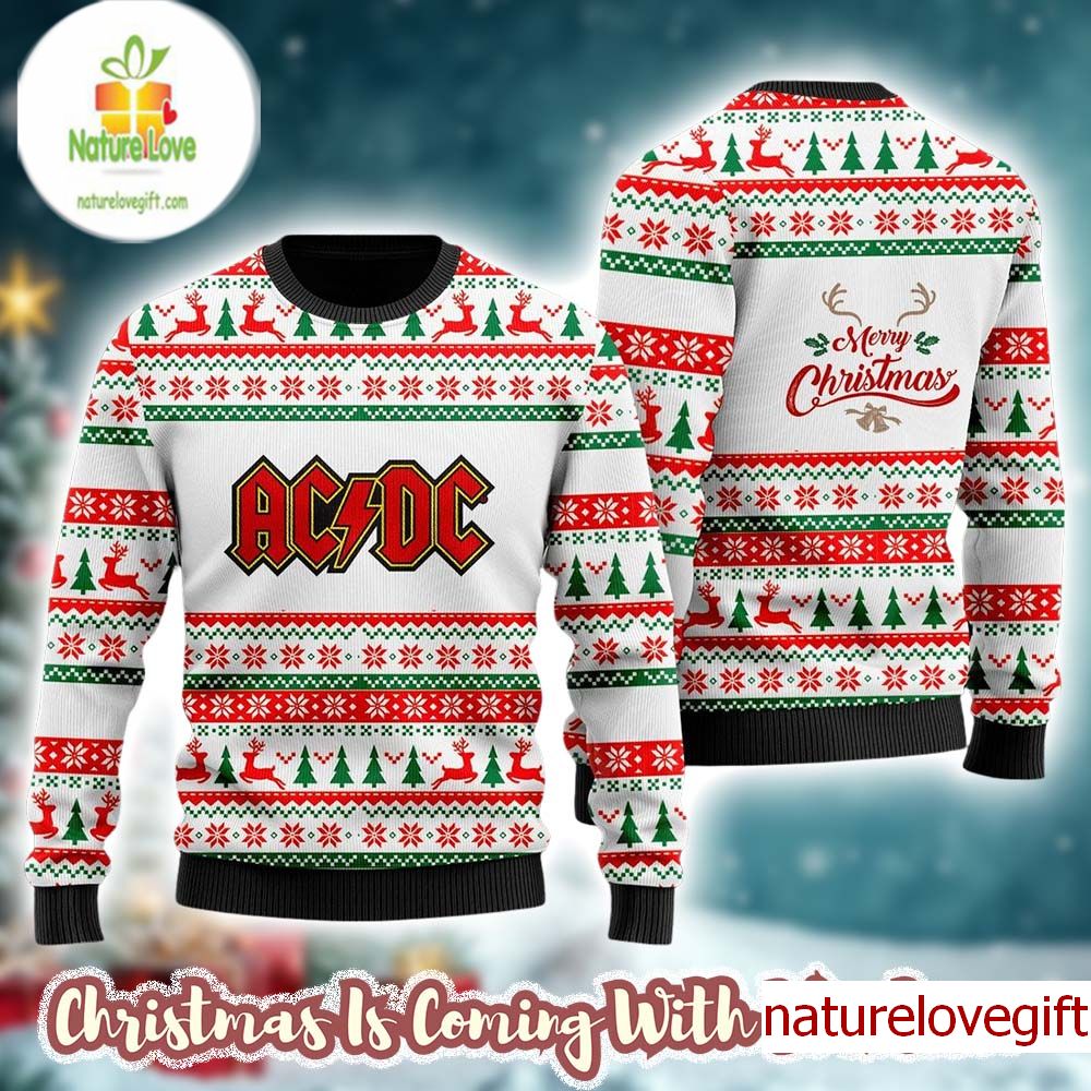 Transform your holiday gatherings into unforgettable rock 'n' roll celebrations with the ACDC Merry Christmas Signature Logo With Holiday Pattern Knitted White Ugly Christmas Sweater. This eye-catching piece blends the iconic ACDC logo with a festive flair, featuring a whimsical holiday pattern that captures the spirit of the season while keeping your style undeniably bold.Crafted for both comfort and flair, this ugly Christmas sweater is perfect for cozy nights by the fire, holiday parties, or festive family gatherings. Imagine yourself sporting this unique design, attracting compliments and sparking conversations about your favorite band.Whether you're a die-hard fan or just looking to add a touch of nerdy humor to your holiday wardrobe, this sweater is a must-have. Pair it with your favorite jeans or festive pajamas for a look that’s both fun and stylish. Don’t miss out on the chance to rock around the Christmas tree—grab yours today and make this season truly unforgettable!