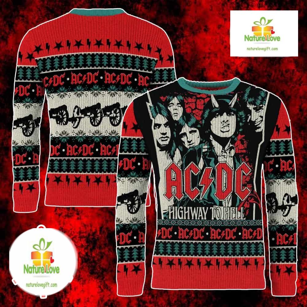 ACDC Ugly Christmas Sweater Highway To Hell Rock Band Jumper