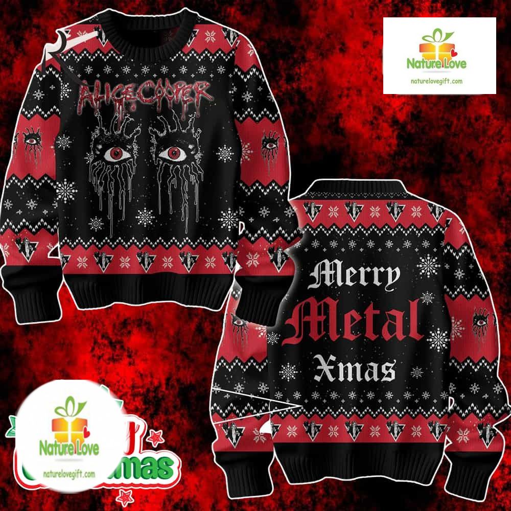 Alice Cooper Ugly Christmas Sweater Metal Xmas Wool Pullover