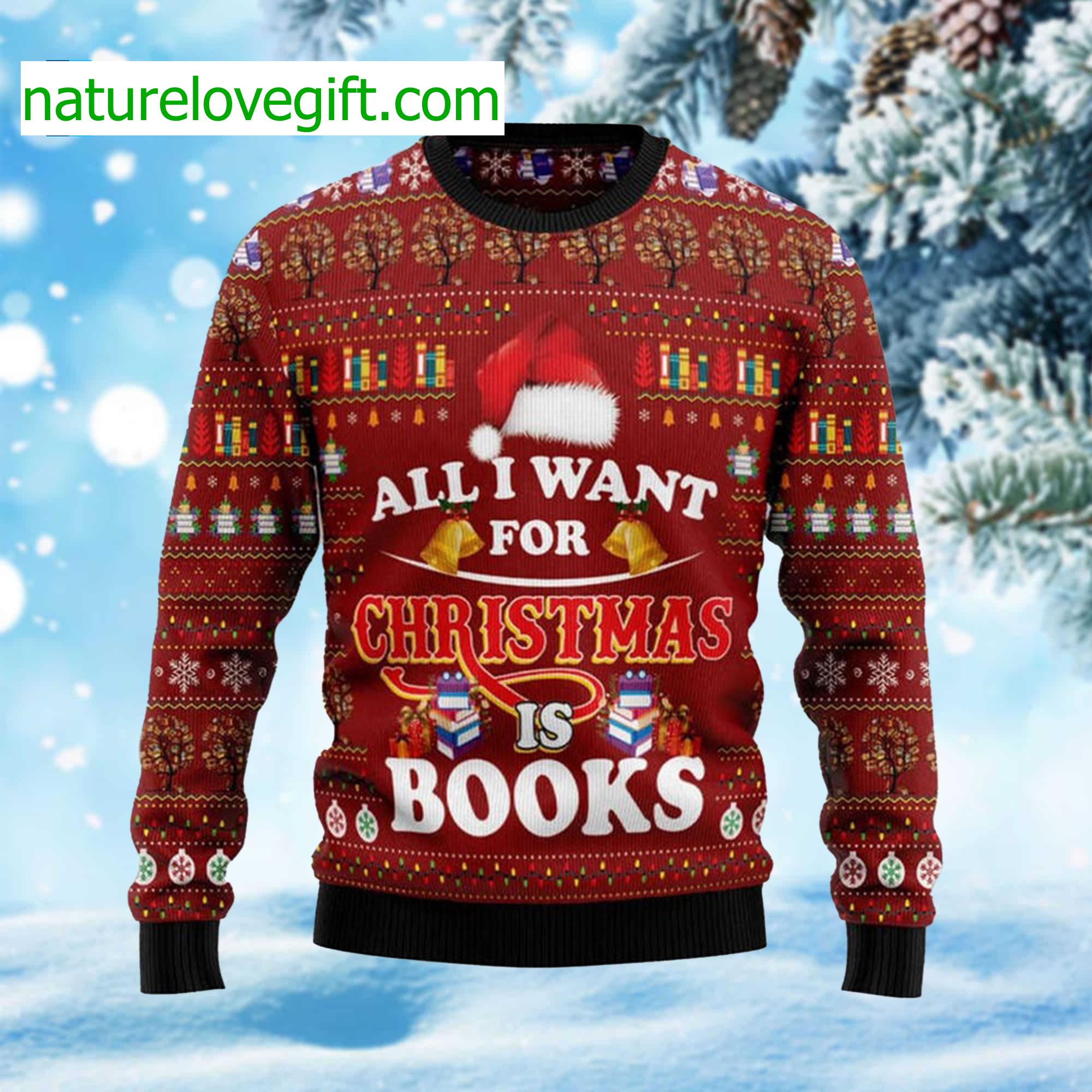 All I Want For Christmas Is Books Ugly Christmas Sweater details: