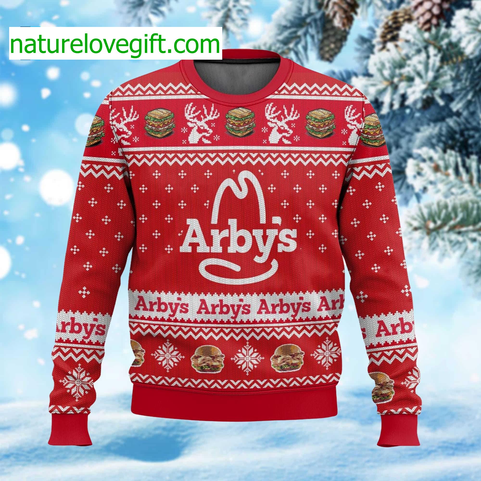 Transform your holiday gatherings into a whimsical feast of laughter and cheer with the Arby's Ugly Christmas Sweater. This delightfully quirky piece features a playful design that pays homage to the beloved fast-food chain, making it the perfect attire for festive parties or cozy nights by the fire.Crafted from soft, breathable fabric, this sweater promises warmth while ensuring you stand out in a crowd of holiday revelers. Whether you're indulging in seasonal treats or participating in a game day watch party, its vibrant colors and unique graphics will bring a smile to everyone’s face.Imagine wearing this eye-catching attire while sipping hot cocoa, surrounded by friends and family, evoking the spirit of nostalgia and fun. Don't miss your chance to be the life of the party—grab your Arby's Ugly Christmas Sweater today and let the festivities begin!