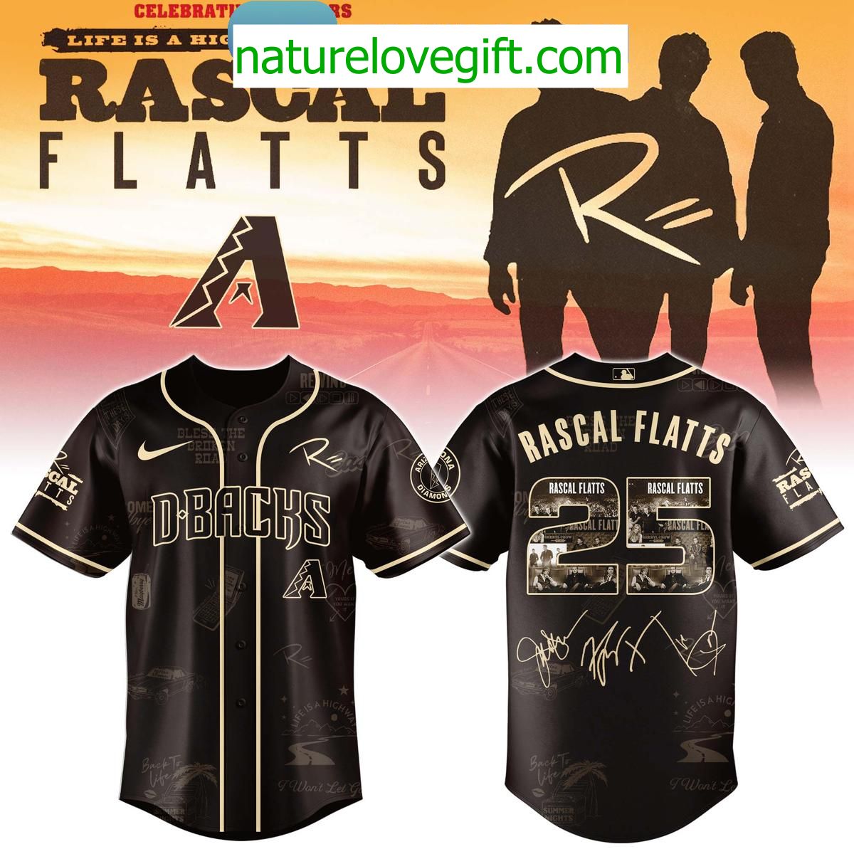 Order your Arizona Diamondbacks Rascal Flatts 25th Anniversary Tour Jersey at Nature Love Gift! ❤️