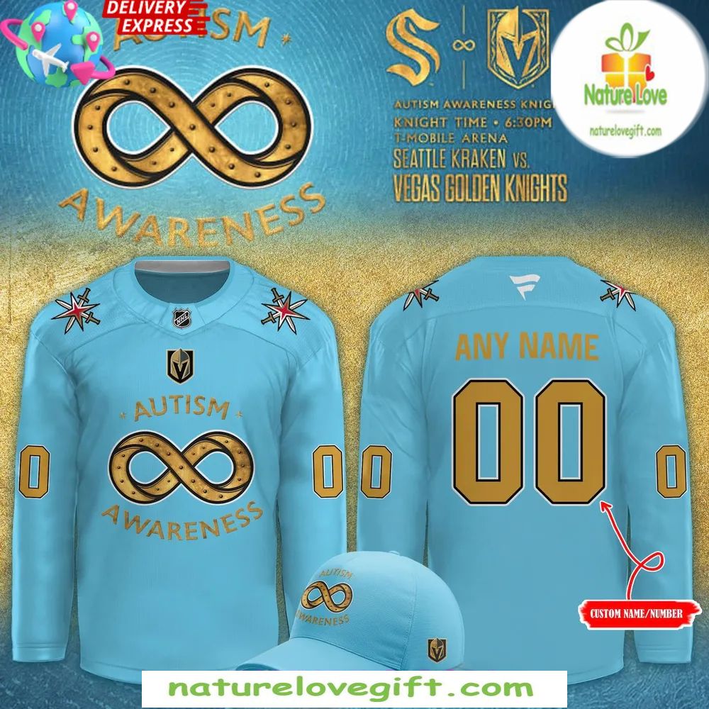 Order your Autism Awareness Vegas Golden Knights 2025 Hockey Jersey at Nature Love Gift! ❤️