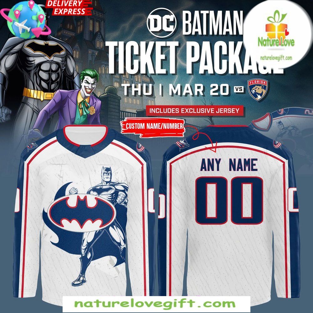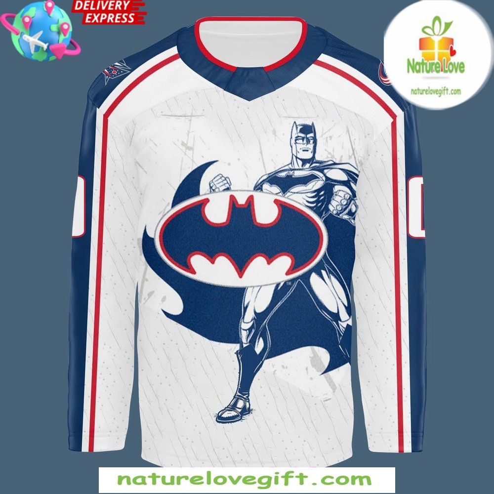 Order your Batman 2025 Columbus Blue Jackets Hockey Jersey at Nature Love Gift! ❤️