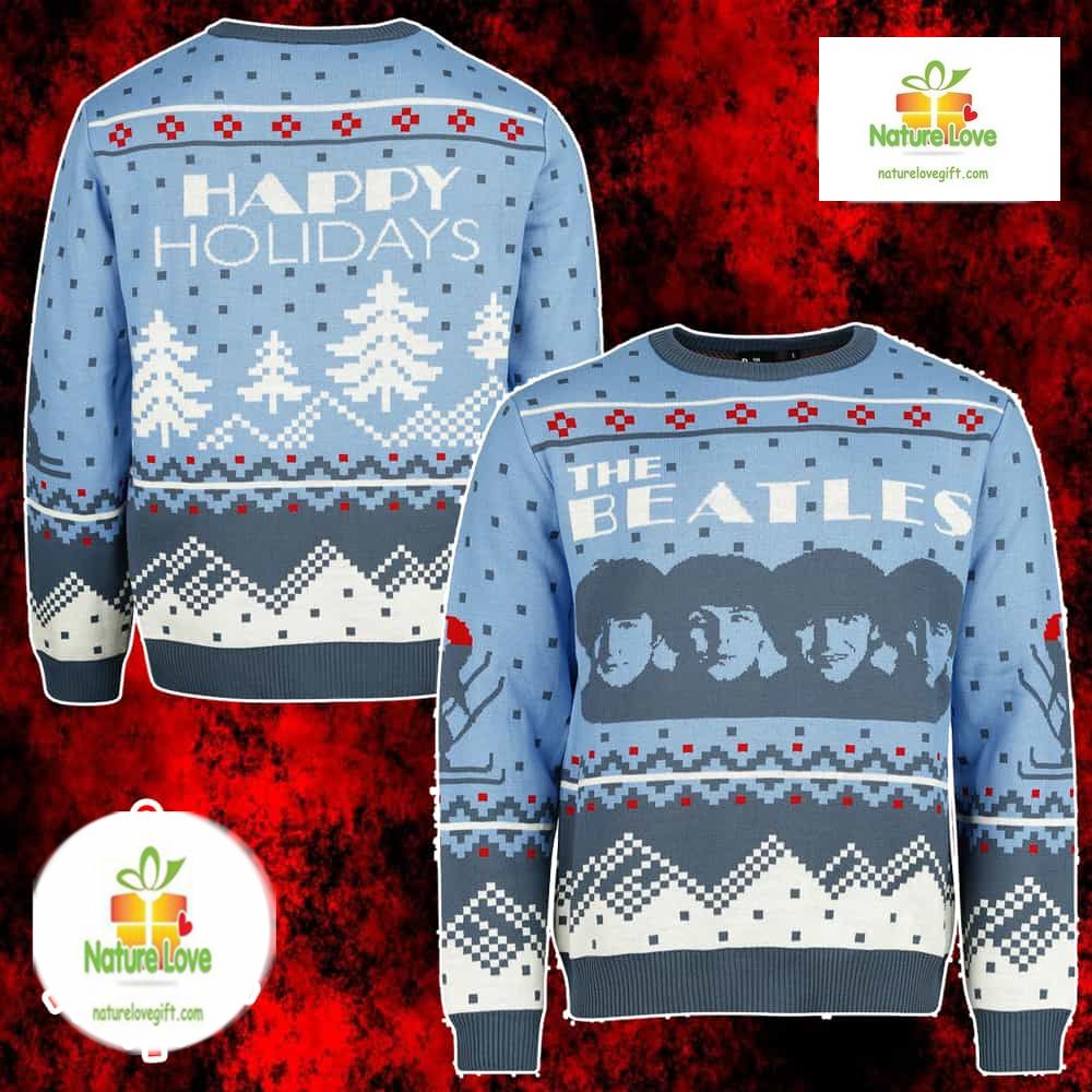 Beatles Ugly Christmas Sweater Blue Snowflake Band Silhouette Music Fan Gift details: