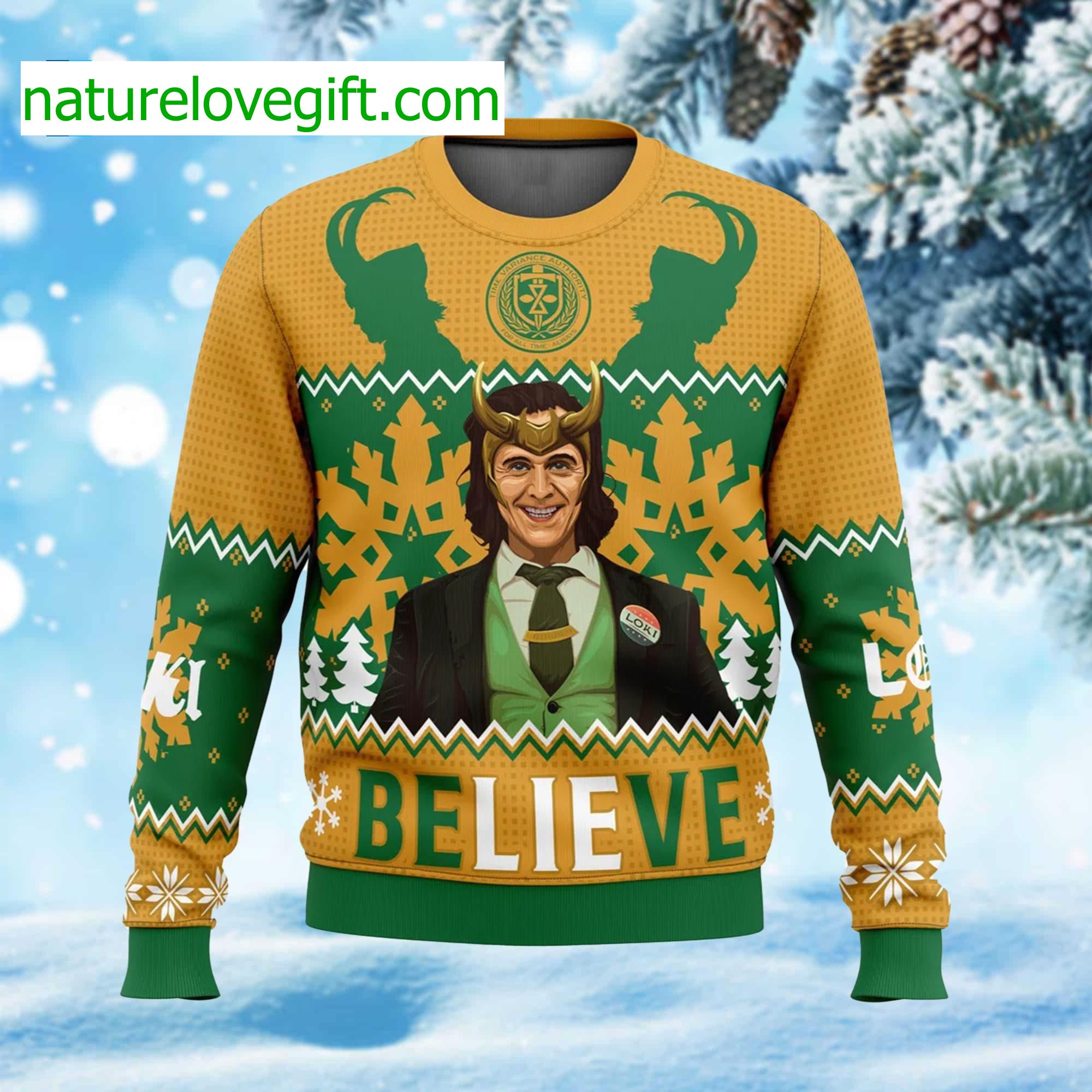 Celebrate the whimsical spirit of the holidays with the Believe Loki Ugly Christmas Sweater. This delightfully quirky design captures the essence of mischief and magic, blending traditional festive motifs with a playful twist inspired by everyone’s favorite trickster god. Crafted for those who appreciate nerd humor and a touch of the unconventional, this sweater is sure to be the centerpiece of your holiday gatherings.Imagine cozying up by the fire, sipping hot cocoa, and sharing laughs with friends while sporting this eye-catching apparel. Perfect for game day or casual family get-togethers, it invites compliments and ignites conversations about your favorite Marvel characters.Whether you're attending an ugly sweater party or simply embracing the holiday cheer, let this piece be your go-to for warmth and style. Transform your festive wardrobe and spread the joy of Loki's charm—grab yours now and make this season unforgettable!