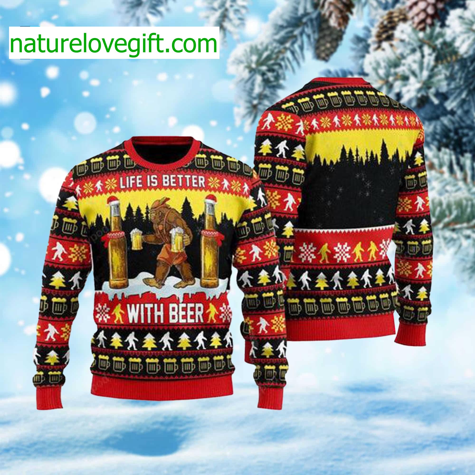 Bigfoot Life Is Better With Beer Ugly Christmas Sweater details: