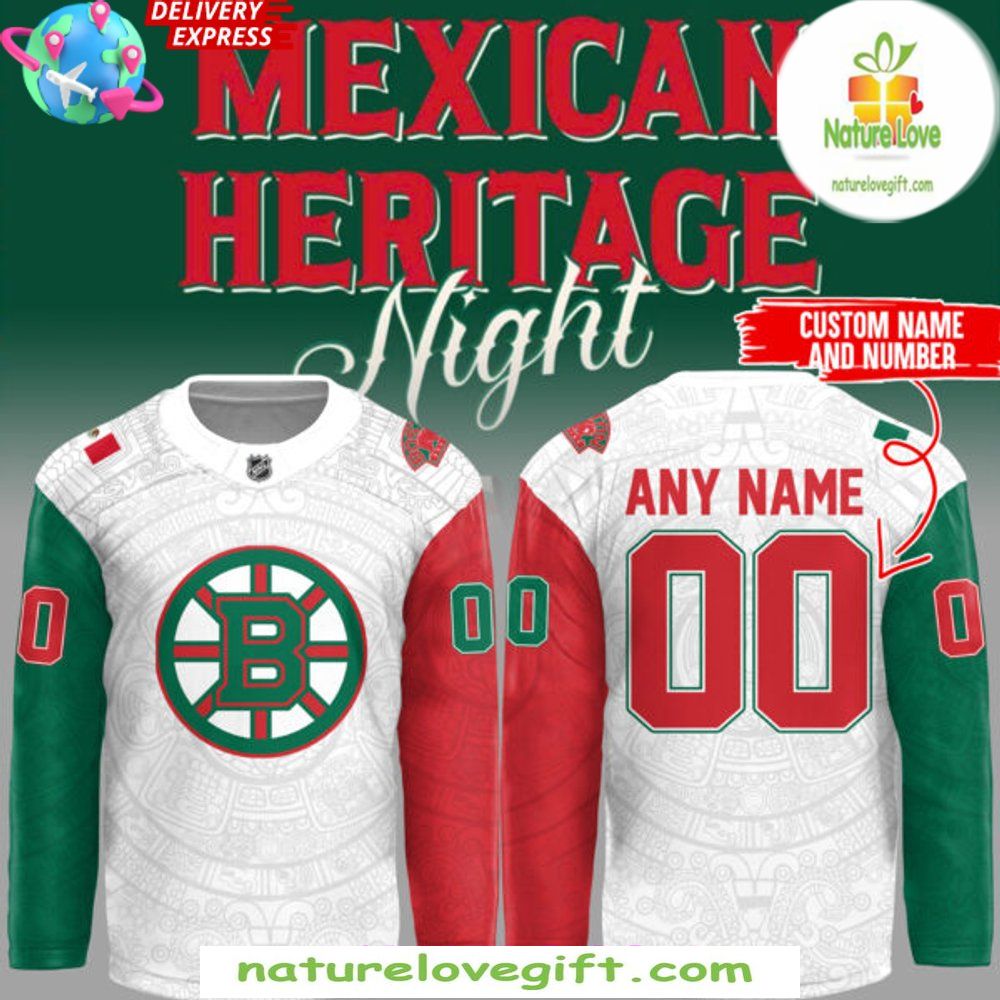 Order your Boston Bruins 2025 Mexican Heritage Night Hockey Jersey at Nature Love Gift! ❤️