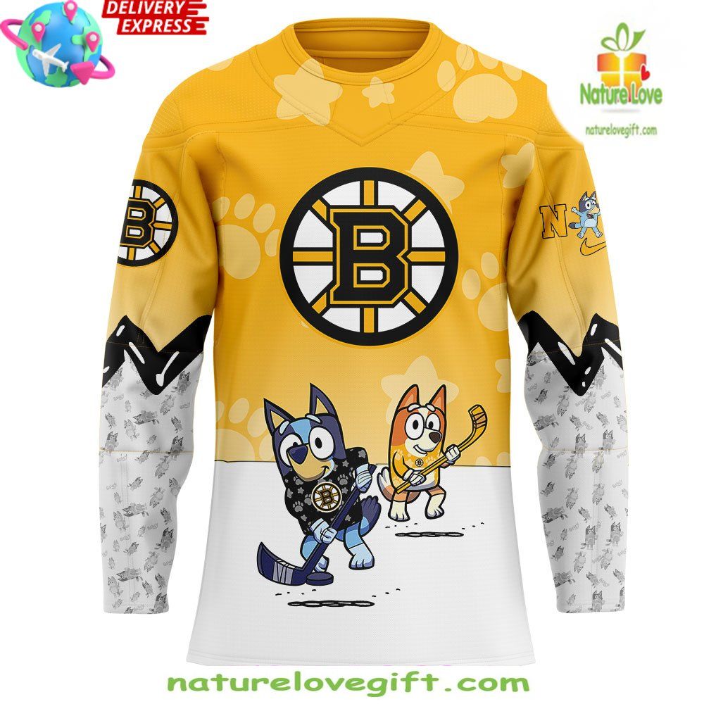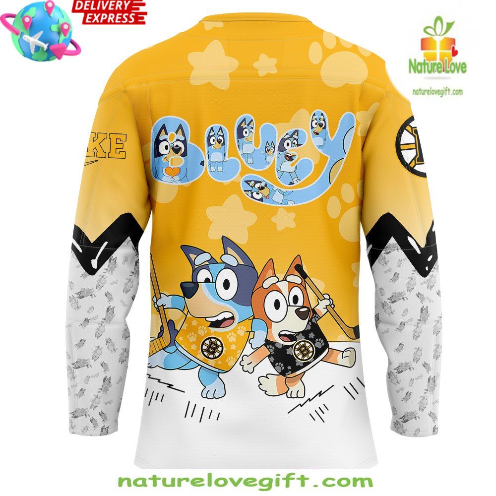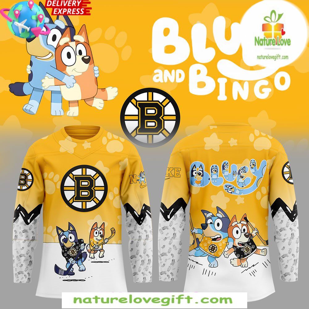 Order your Boston Bruins Bluey Bingo Hockey Jersey Kids Special Edition at Nature Love Gift! ❤️