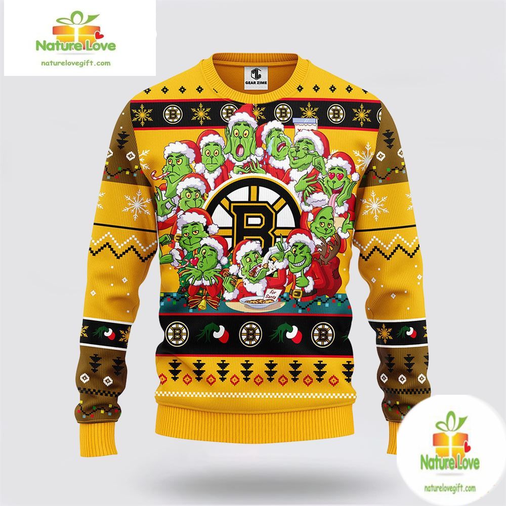 Boston Bruins Ugly Christmas Sweater Grinch Holiday Sweatshirt 12 Designs