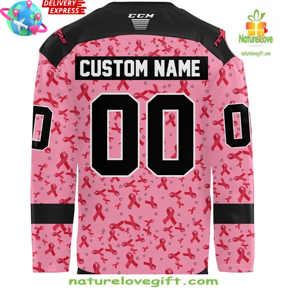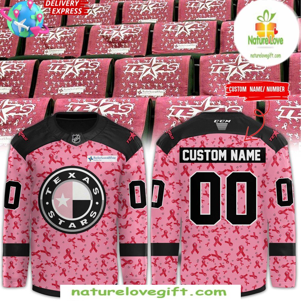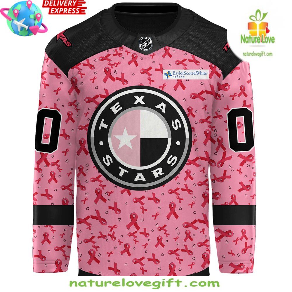 Order your Breast Cancer Awareness Texas Stars Hockey Jersey 2025 at Nature Love Gift! ❤️