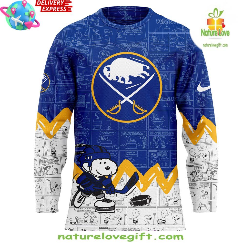 Order your Buffalo Sabres Peanuts Anniversary Limited Edition Hockey Jersey at Nature Love Gift! ❤️