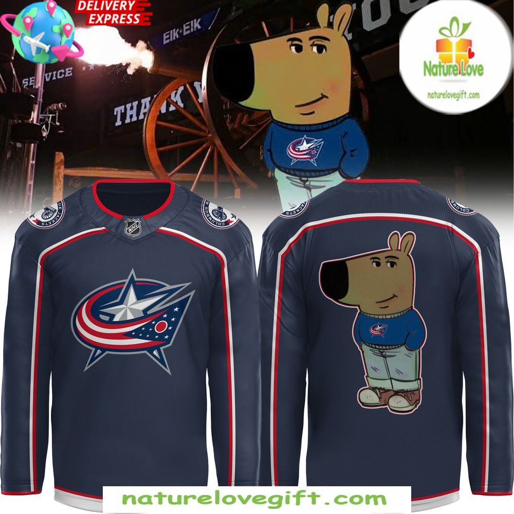 Order your Columbus Blue Jackets Chill Guy Navy Hockey Jersey NHL Fan Gear at Nature Love Gift! ❤️