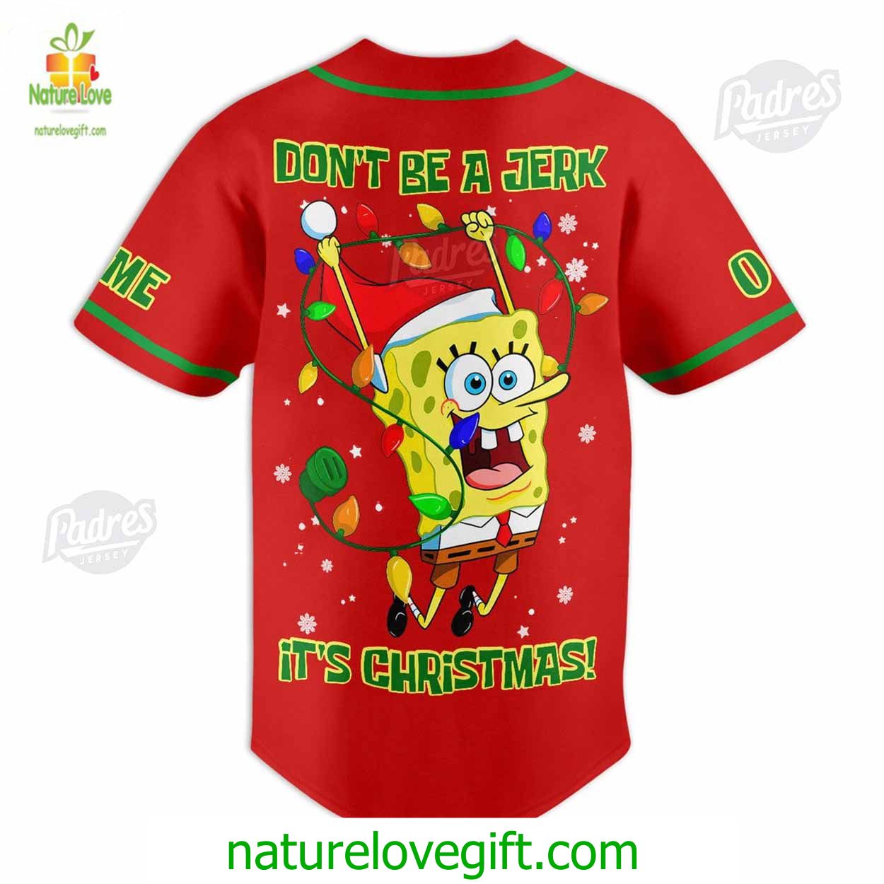 Custom Christmas Spongebob Squartens Baseball Jersey details: