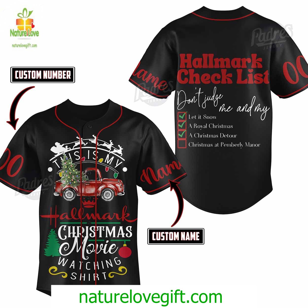 Custom Hallmark Christmas Movie Watching Shirt Baseball Jersey details: