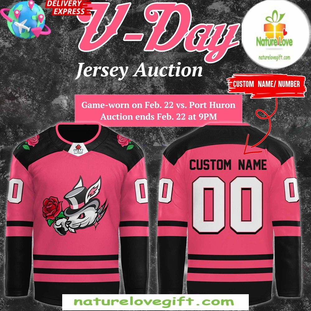 Order your Danbury Hat Tricks 2025 Valentine's Day Hockey Jersey at Nature Love Gift! ❤️
