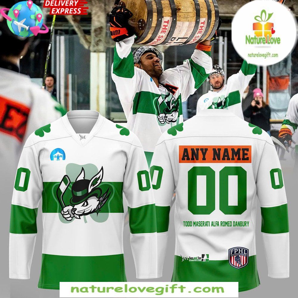 Order your Danbury Hat Tricks St Patricks Day 2025 Hockey Jersey at Nature Love Gift! ❤️