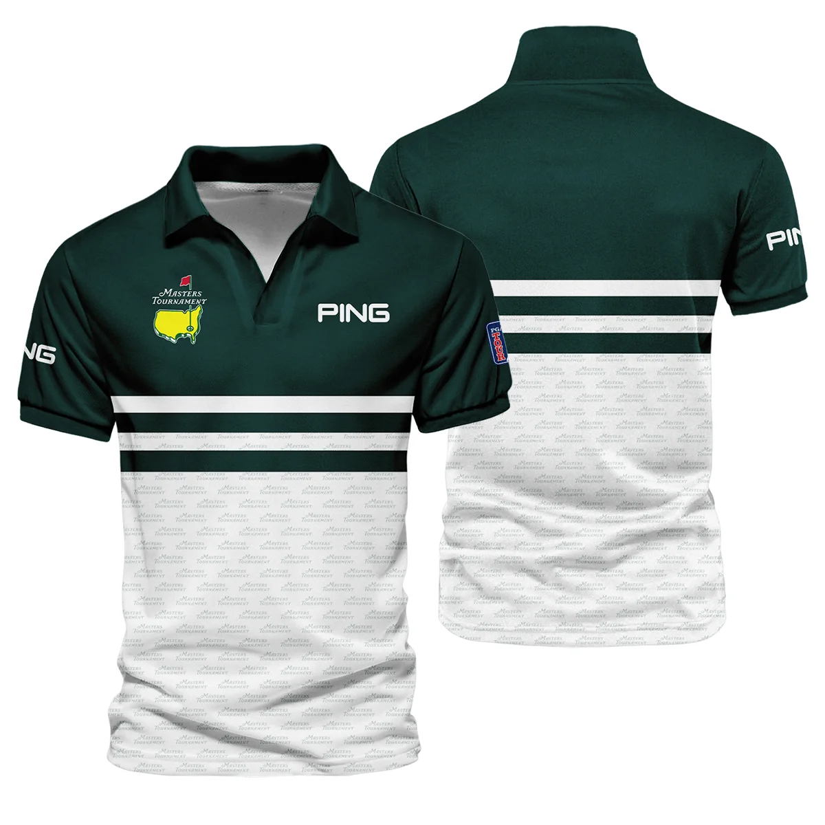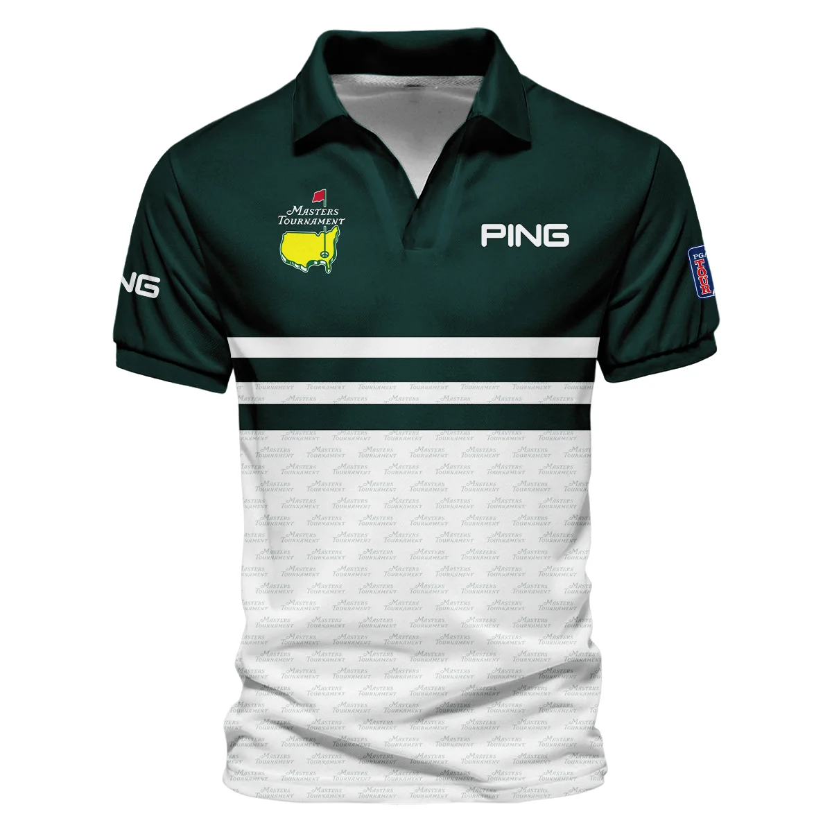 Dark Green Mix White With Logo Pattern Masters Tournament Ping Vneck Polo Shirt Style Classic Polo Shirt For Men