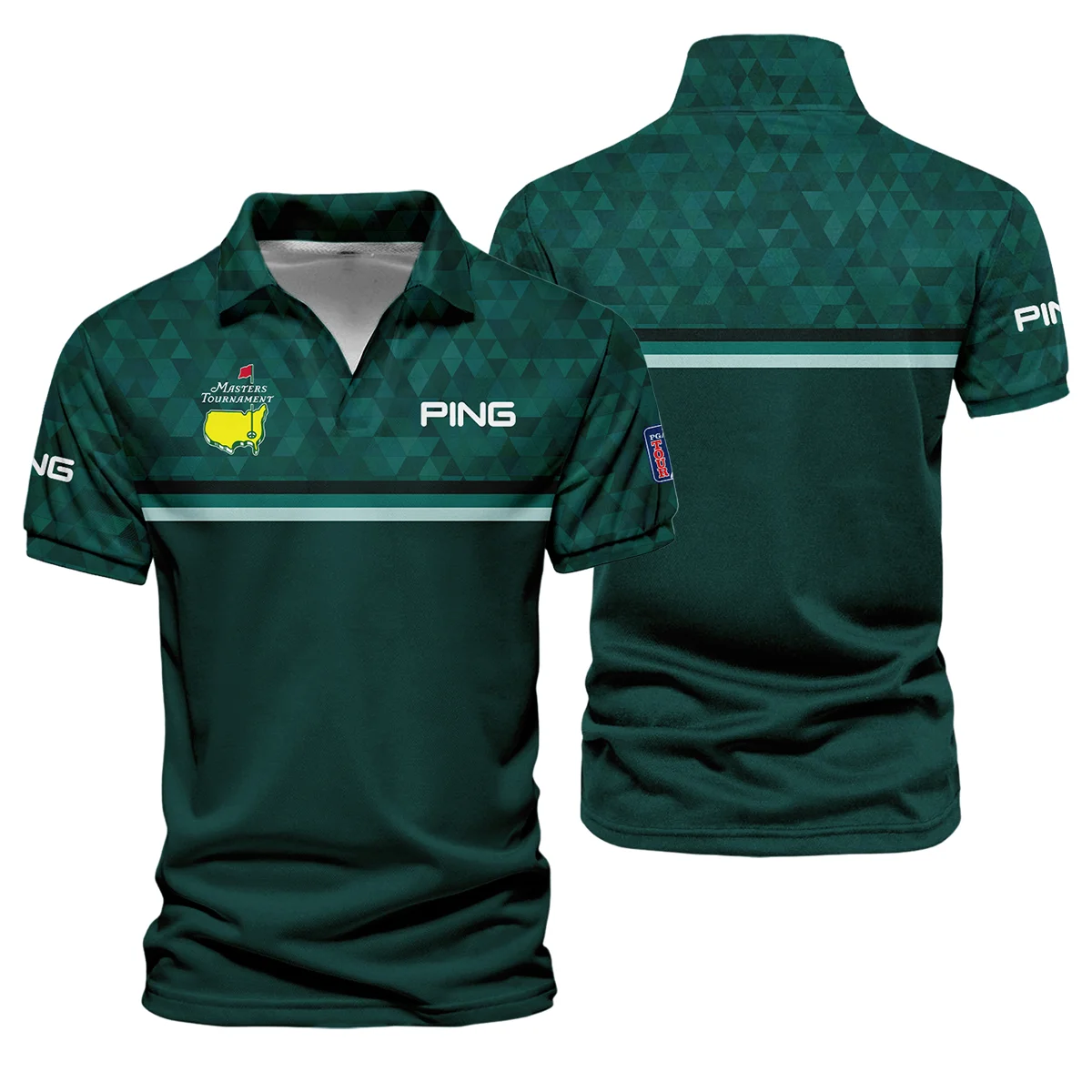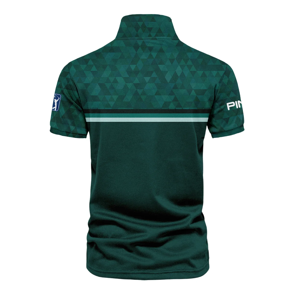 Dark Green Triangle Mosaic Pattern Masters Tournament Ping Vneck Polo Shirt Style Classic Polo Shirt For Men
