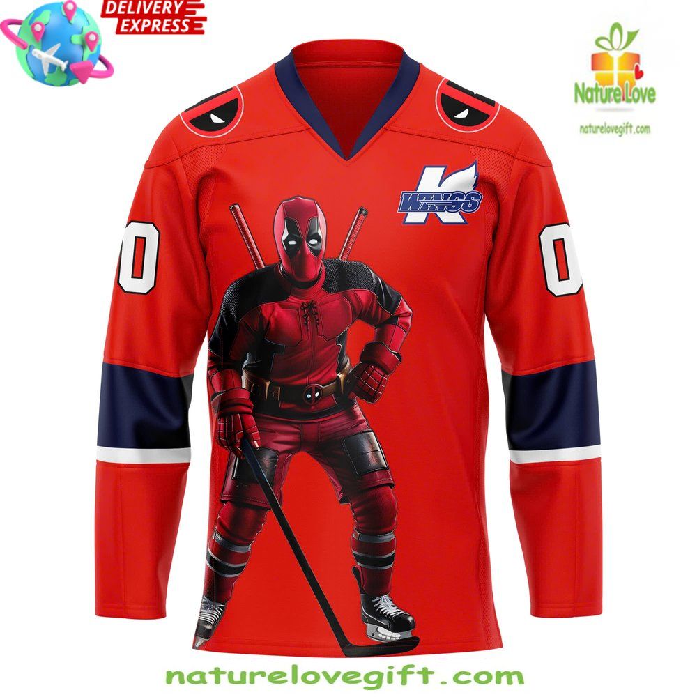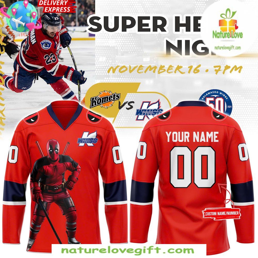Order your Deadpool Hockey Jersey Kalamazoo Wings Super Hero Night 2025 at Nature Love Gift! ❤️