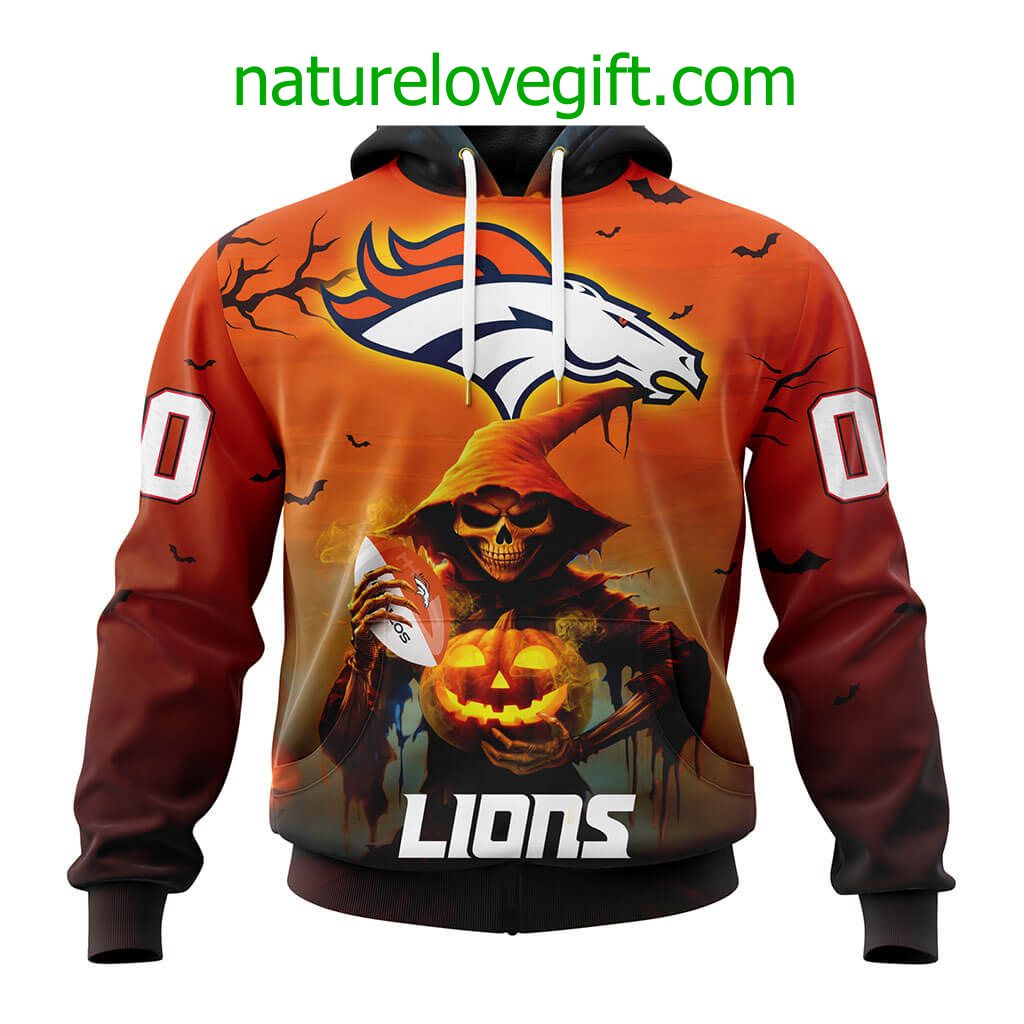 Order your Denver Broncos NFL Grim Reaper Hoodie For Halloween Personalized Hoodies at Nature Love Gift! ❤️