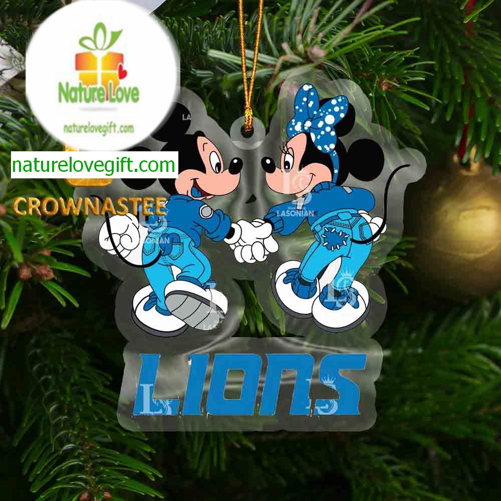 Order your Detroit Lions Mickey Minnie Valentine Rugby NFL Acrylic Christmas Tree Decor Ornament at Nature Love Gift! ❤️