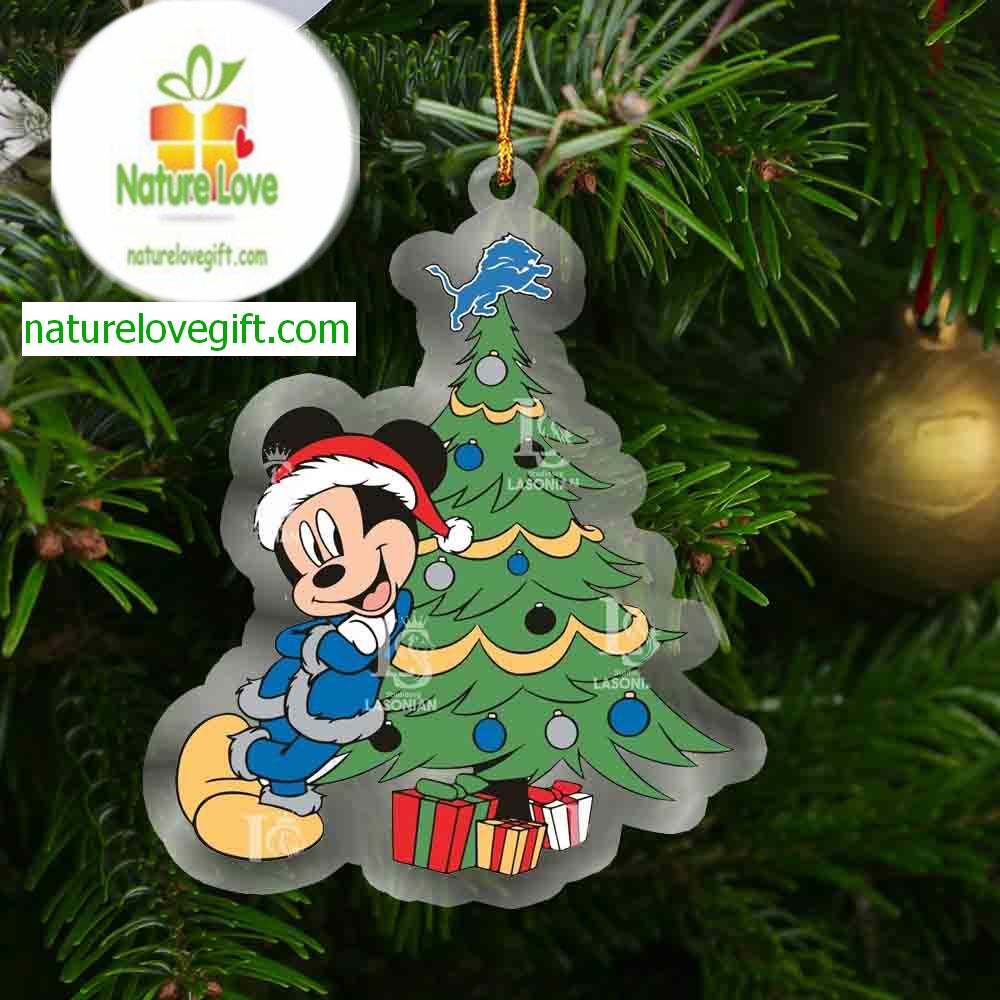 Order your Detroit Lions Mickey Mouse Xmas NFL Acrylic Christmas Tree Decor Ornament at Nature Love Gift! ❤️