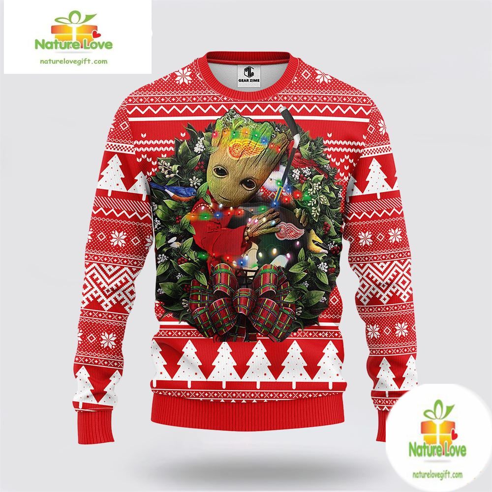 Detroit Red Wings Ugly Christmas Sweater Groot NHL Hockey Fan Gift