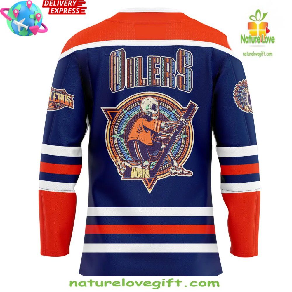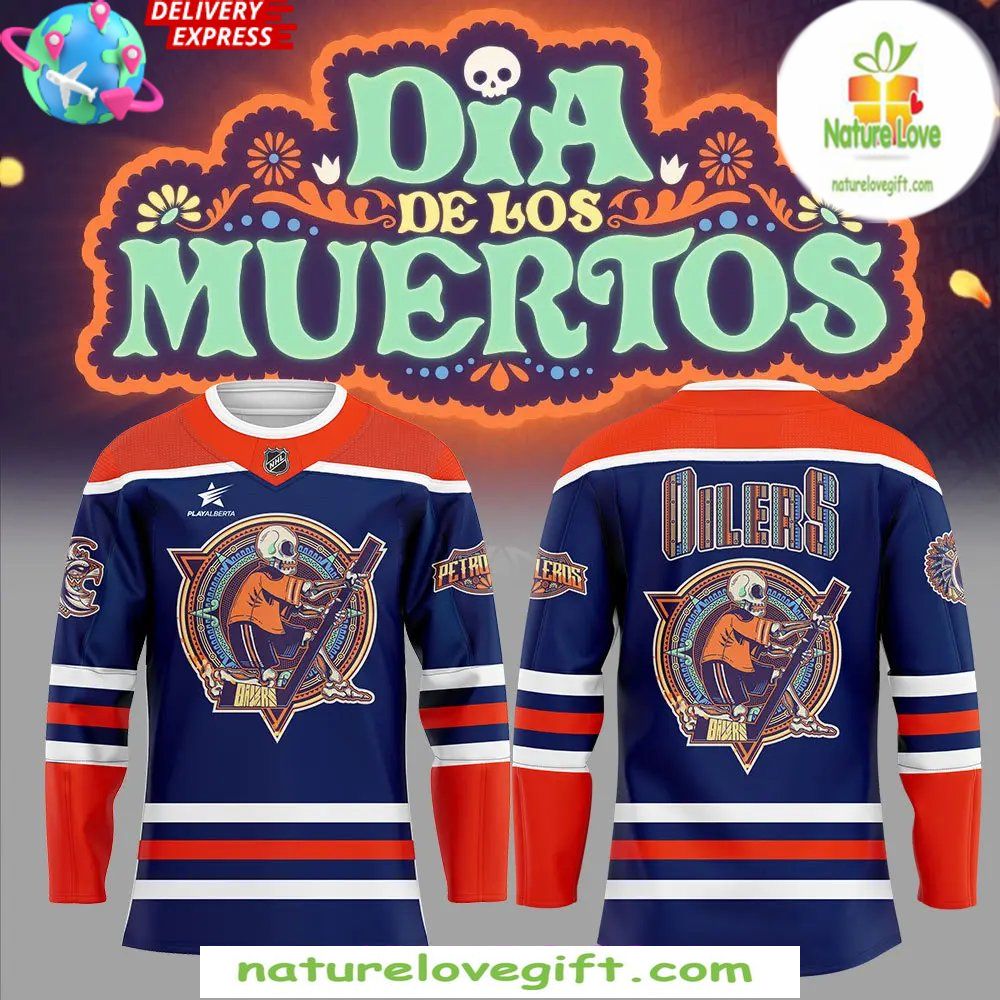 Order your Edmonton Oilers Dia de los Muertos 2025 Hockey Jersey at Nature Love Gift! ❤️