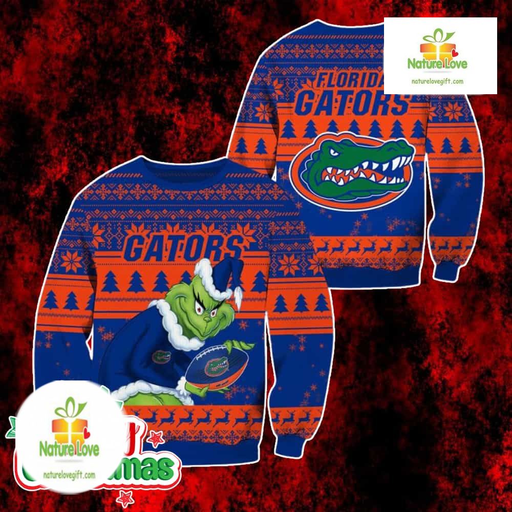 Florida Gators Grinch Ugly Christmas Sweater Blue Orange Holiday Pullover
