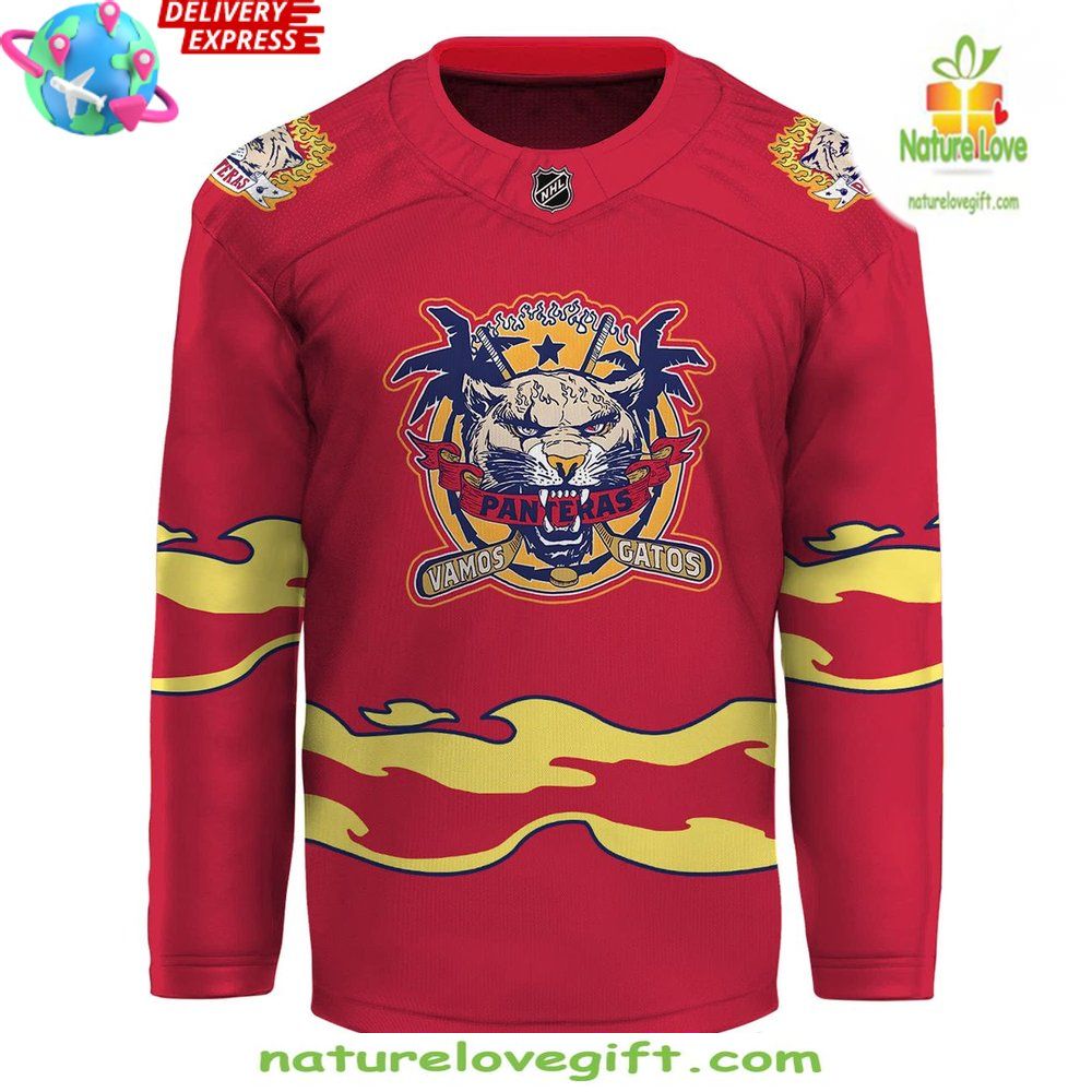 Order your Florida Panthers 2025 Vamos Gatos Night Hockey Jersey at Nature Love Gift! ❤️