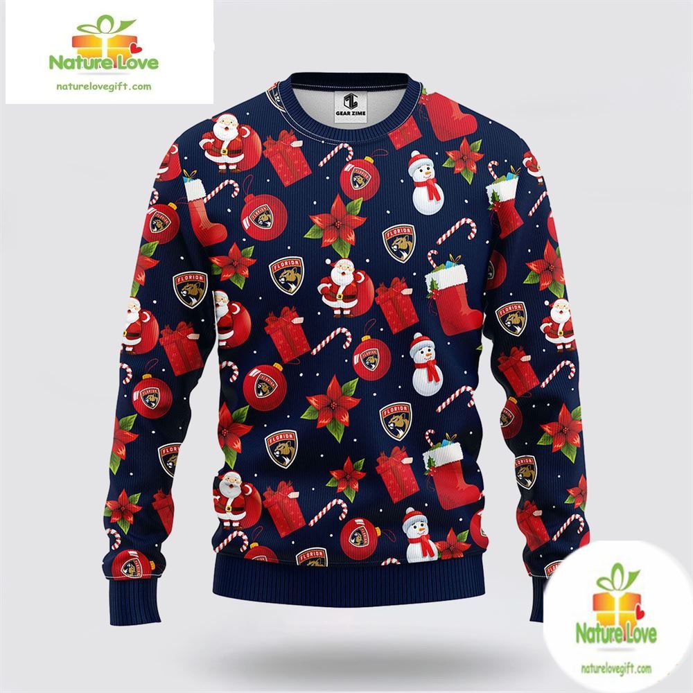 Florida Panthers Ugly Christmas Sweater Santa Snowman NHL