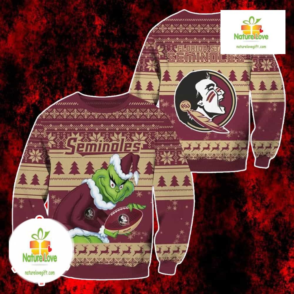 Florida State Seminoles Grinch Ugly Christmas Sweater Holiday NCAA details: