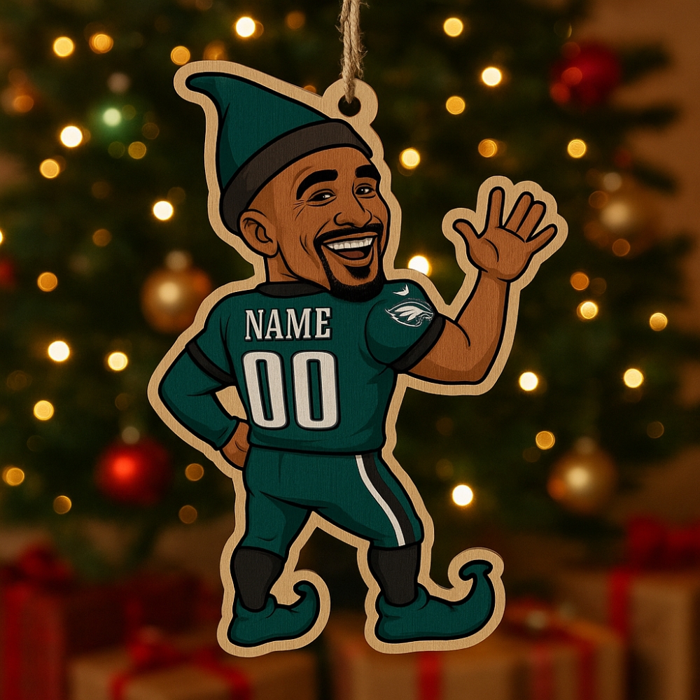 Funny Philadelphia Eagles Jalen Hurts Elf Wooden Ornament