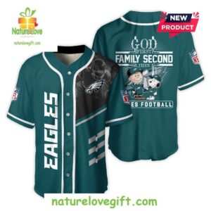 Order your God First Family Second Then Eagles Football Baseball Jersey at Nature Love Gift! ❤️