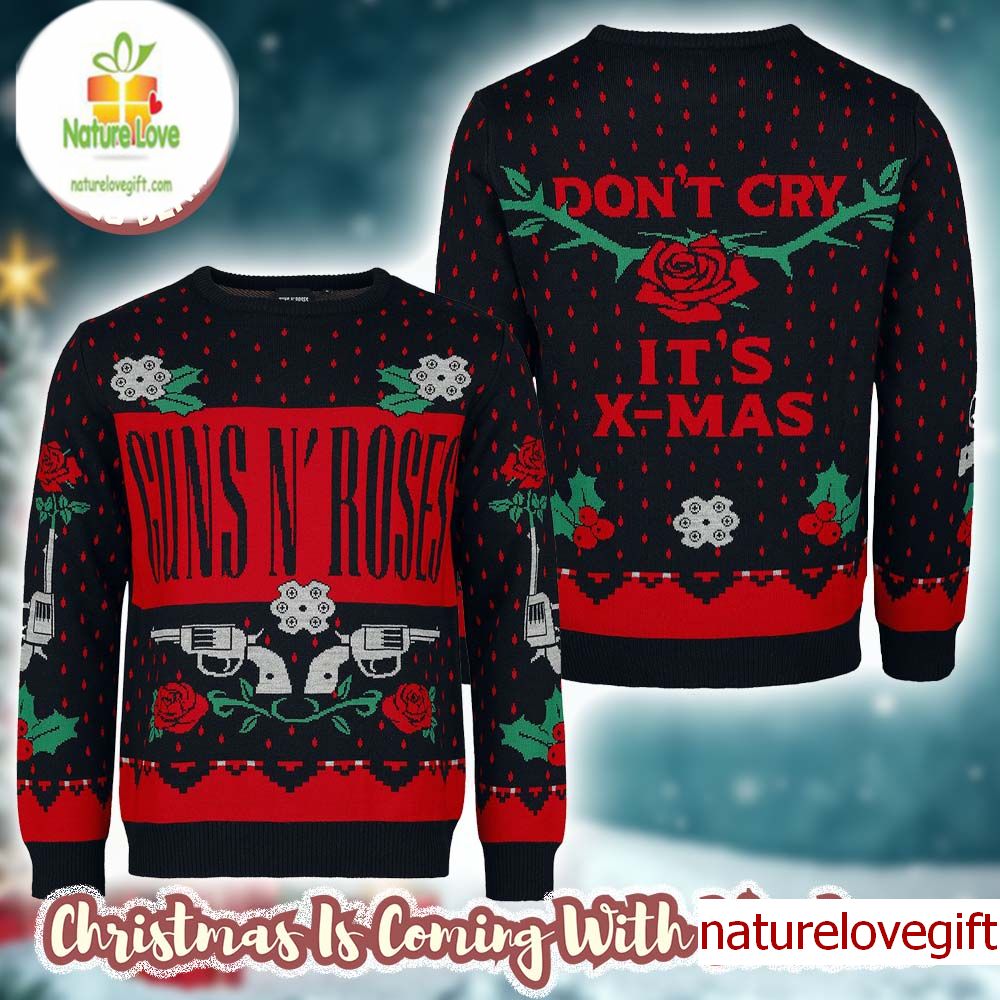 Guns N Roses Don't Cry It Is Xmas 2025 Knitted Ugly Christmas Sweater details: