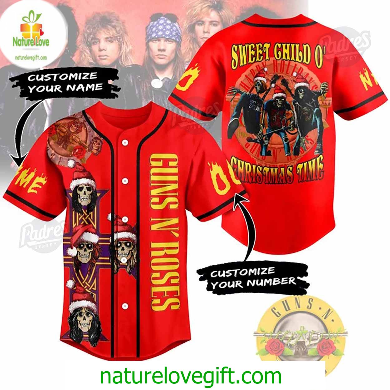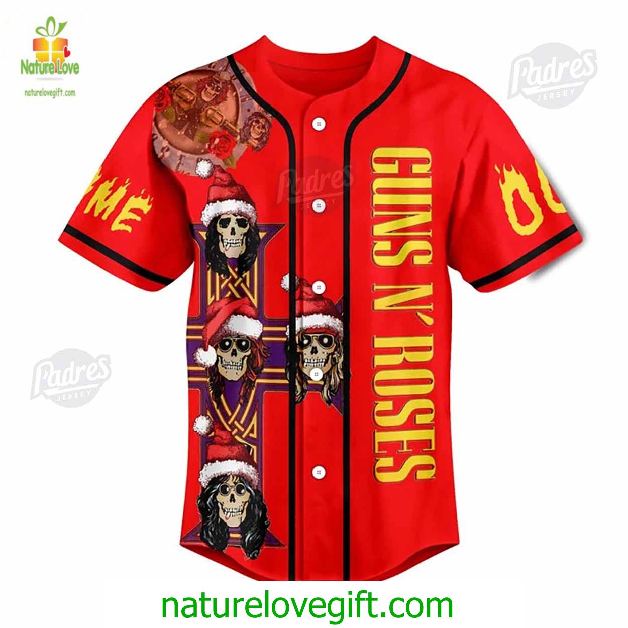 Unleash your inner rock star this holiday season with our Guns N’ Roses Skull Design Red Christmas Baseball Jersey! This isn’t just a jersey; it’s a bold tribute to the legendary band, perfect for those who love to blend their passion for music with festive cheer. The striking skull design, adorned with iconic motifs, captures the rebellious spirit of rock ‘n’ roll, making it an ideal piece for game day celebrations or cozy winter gatherings.Crafted for comfort, this jersey is not only stylish but also perfect for layering during those chilly nights out. Imagine yourself at a Christmas party, flaunting this unique blend of vintage style and contemporary flair, while everyone else is stuck in their boring holiday sweaters.Whether you’re gifting it to a fellow fan or treating yourself, this jersey is bound to spark conversations and create unforgettable memories. Don’t miss out—grab yours today and rock around the Christmas tree!
