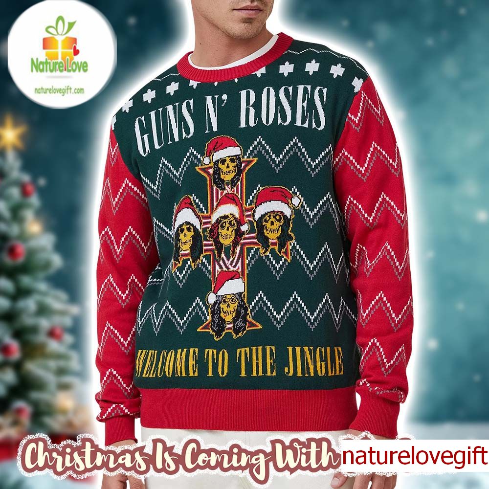 Guns N Roses Welcome To The Jingle Cross Xmas Holiday Logo Ugly Christmas Sweater details: