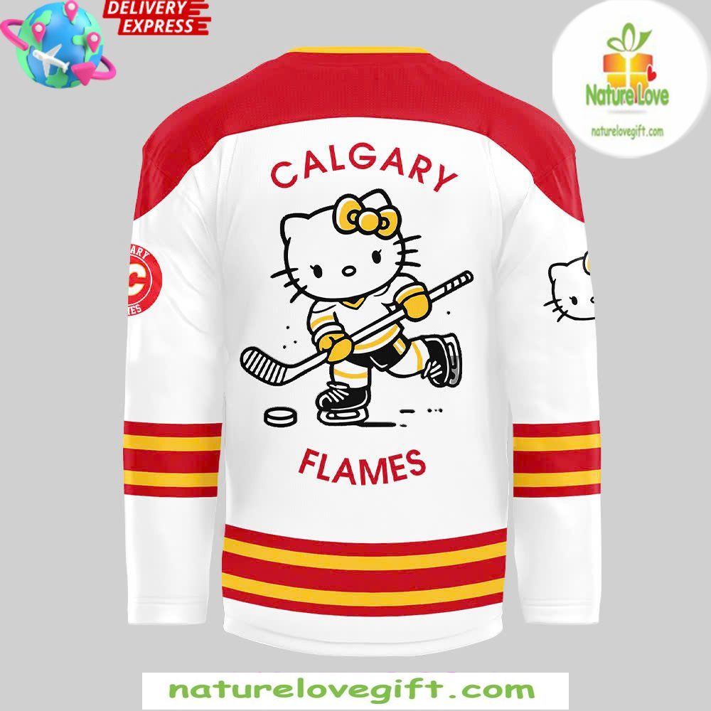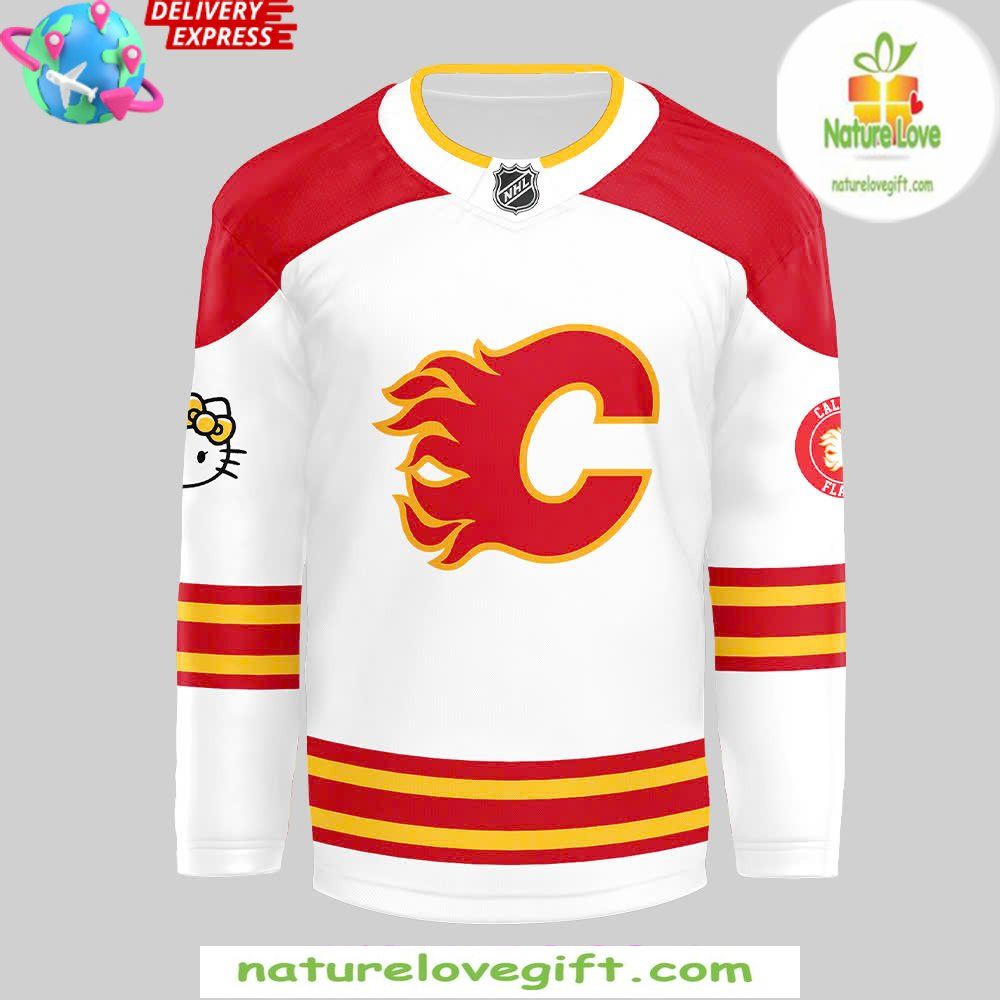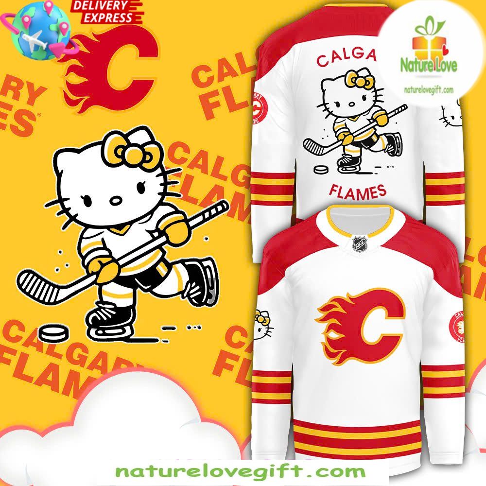 Order your Hello Kitty Calgary Flames 50th Anniversary White Hockey Jersey at Nature Love Gift! ❤️