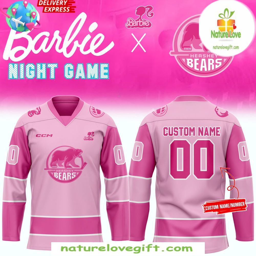 Order your Hershey Bears Barbie Night 2025 Hockey Jersey Pink Jersey at Nature Love Gift! ❤️