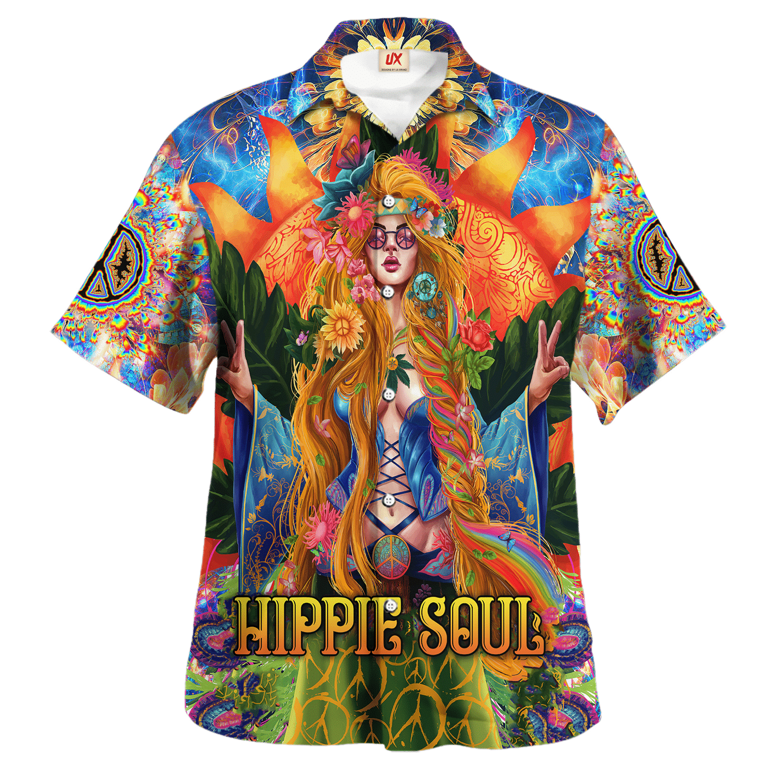 Hippie Hawaiian Shirt Vintage Peace Love Beach Style NV-HP-37