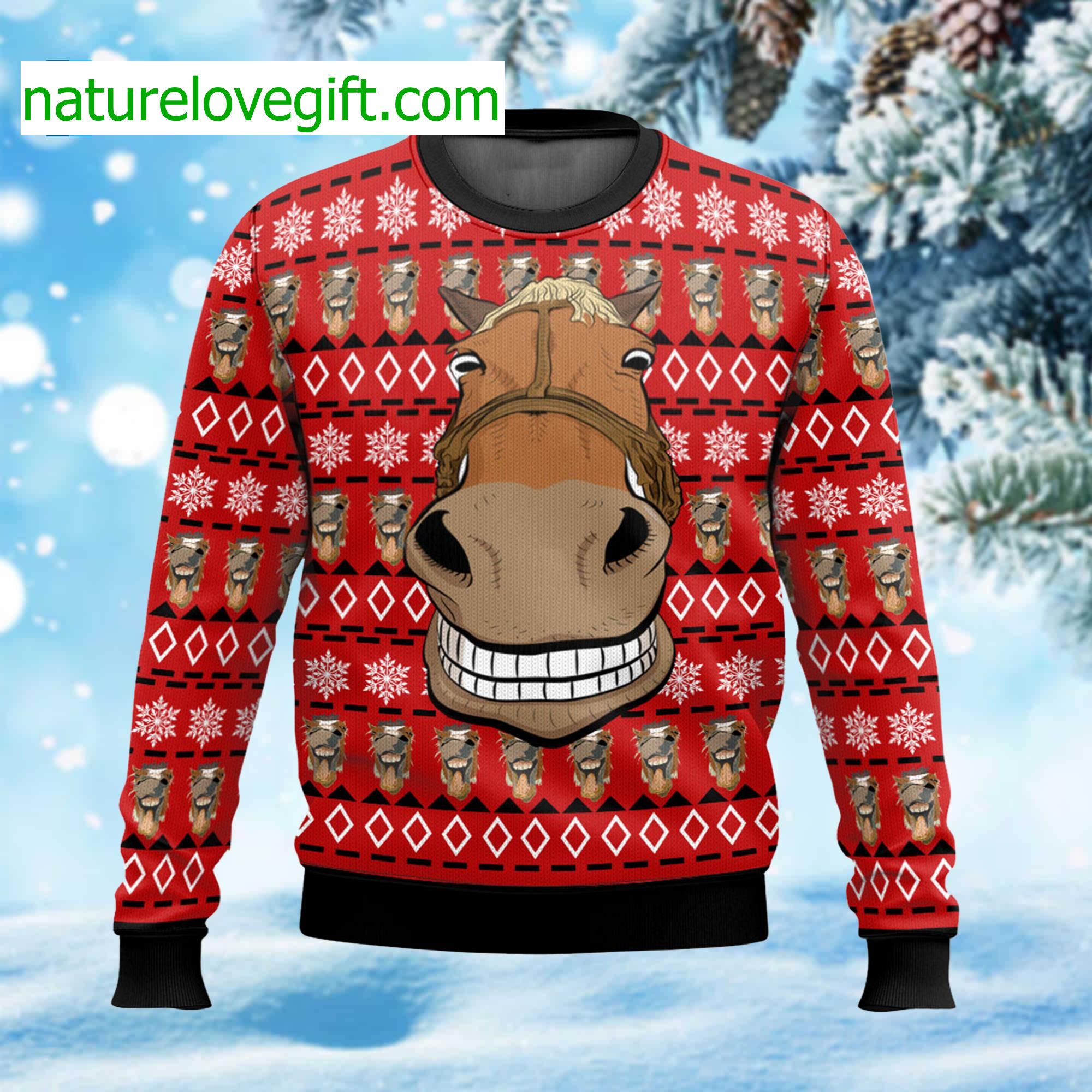 Decked out in a delightful Christmas theme, our Horse Smile Ugly Sweater combines whimsy with warmth, perfect for spreading cheer during the festive season. Picture yourself at a holiday gathering, laughter filling the air as friends and family admire this playful design featuring a grinning horse, sure to spark joy and conversation.Crafted for comfort and style, this sweater is not just about looks; it embodies the cozy spirit of winter, making it an ideal choice for those chilly nights by the fire or fun game day festivities. Whether you're attending an office party or simply enjoying a quiet evening at home, this piece effortlessly blends humor with holiday spirit.Donning this unique sweater will not only keep you snug but also showcase your fun-loving personality. Why not bring a smile to your wardrobe this season? Embrace the joy of the holidays with our Horse Smile Ugly Sweater—your new go-to for festive fun!