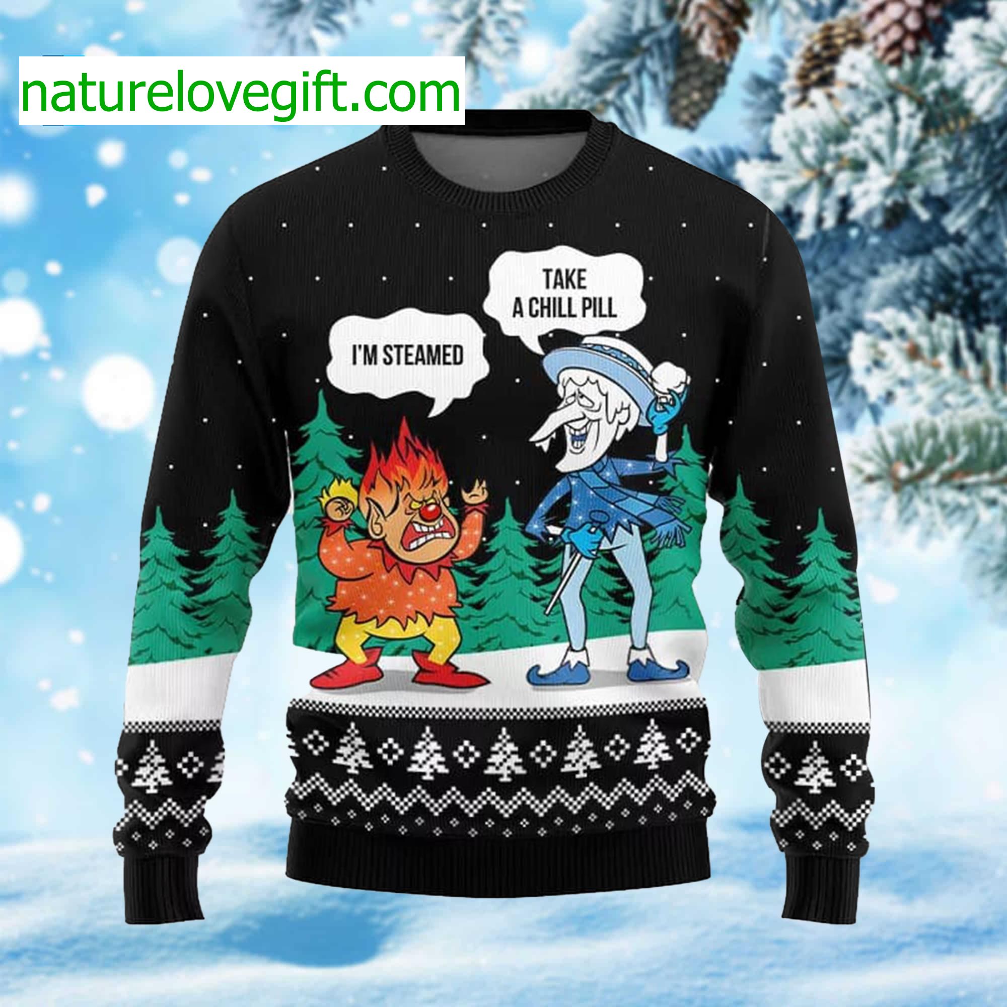 I’m Steamed Take A Chill Pill Ugly Christmas Sweater