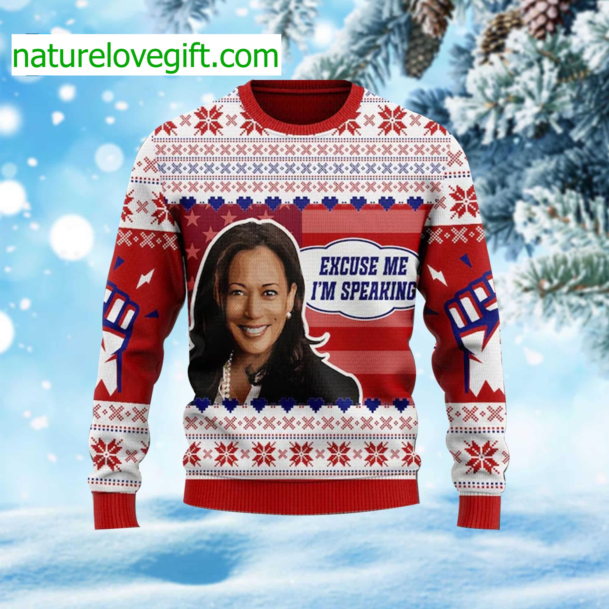 Kamala Harris Excuse Me I'm Speaking Ugly Christmas Sweater details: