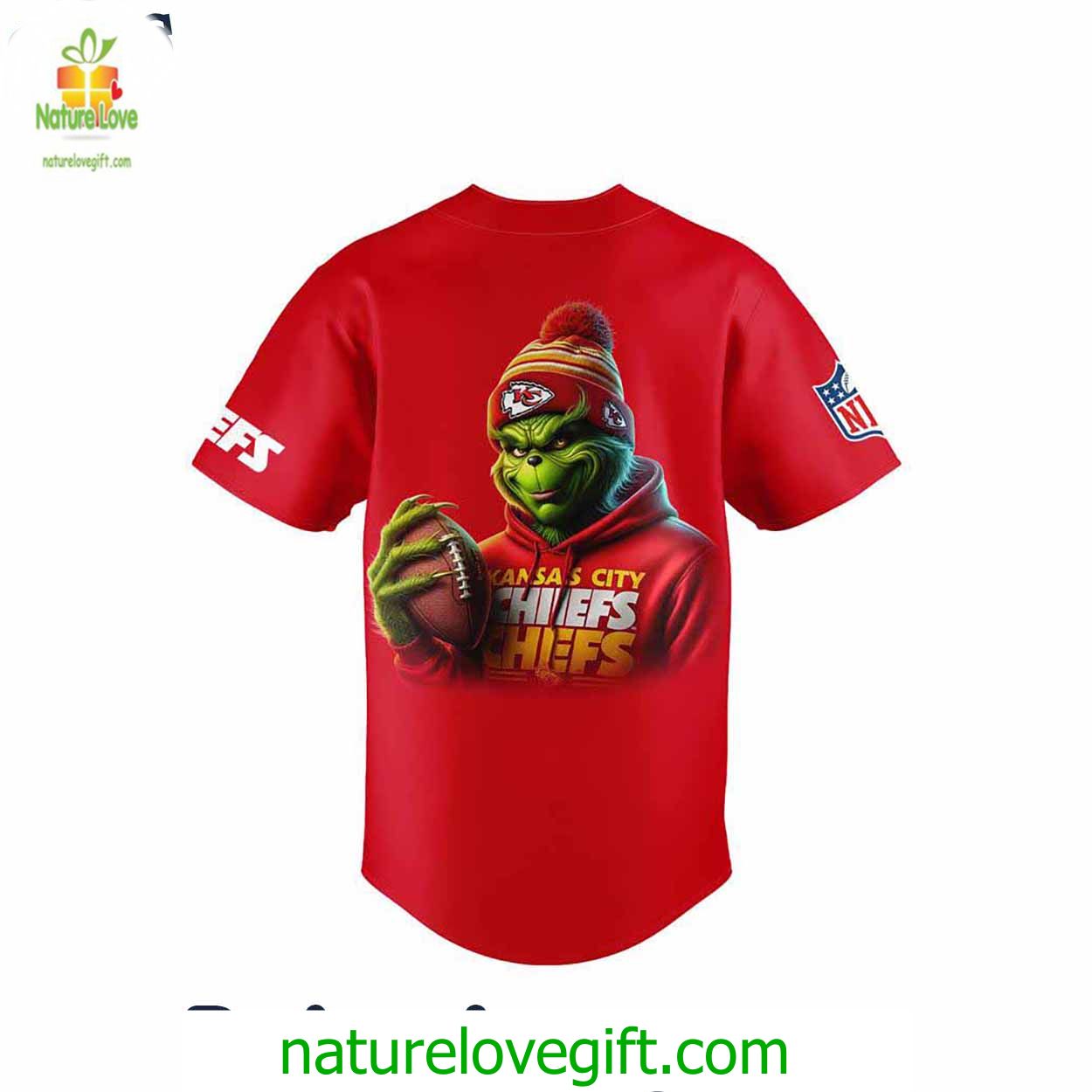 Celebrate the holiday season with a playful twist in our Kansas City Chief x The Grinch Christmas baseball Jersey Outfit! This unique design artfully combines the spirited essence of game day excitement with the whimsical charm of Dr. Seuss's beloved character. Imagine yourself in a vibrant, festive atmosphere, where you can showcase your team pride while embracing the cozy cheer of the holidays.Crafted for both comfort and style, this jersey outfit is perfect for holiday gatherings, tailgating, or simply lounging at home while watching your favorite games. Its eye-catching design is sure to spark conversations and bring smiles, making it a fantastic gift for sports fans and holiday enthusiasts alike.Donโt miss out on the chance to add a dash of nerd humor to your wardrobe this season. Grab your Kansas City Chief x The Grinch jersey today and spread the joy of the holidays with every wear!