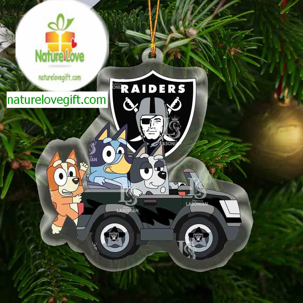 Order your Las Vegas Raiders Bluey Friends Car NFL Acrylic Christmas Tree Decoration Ornament at Nature Love Gift! ❤️