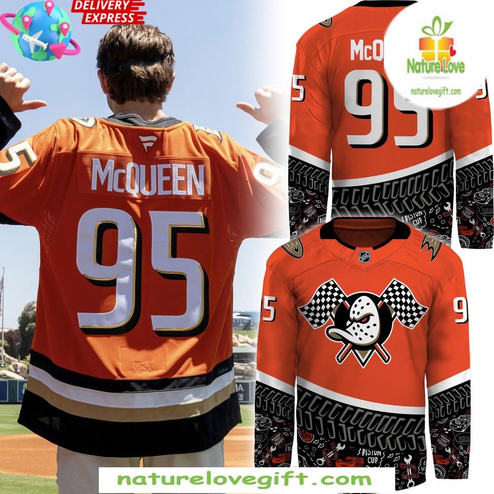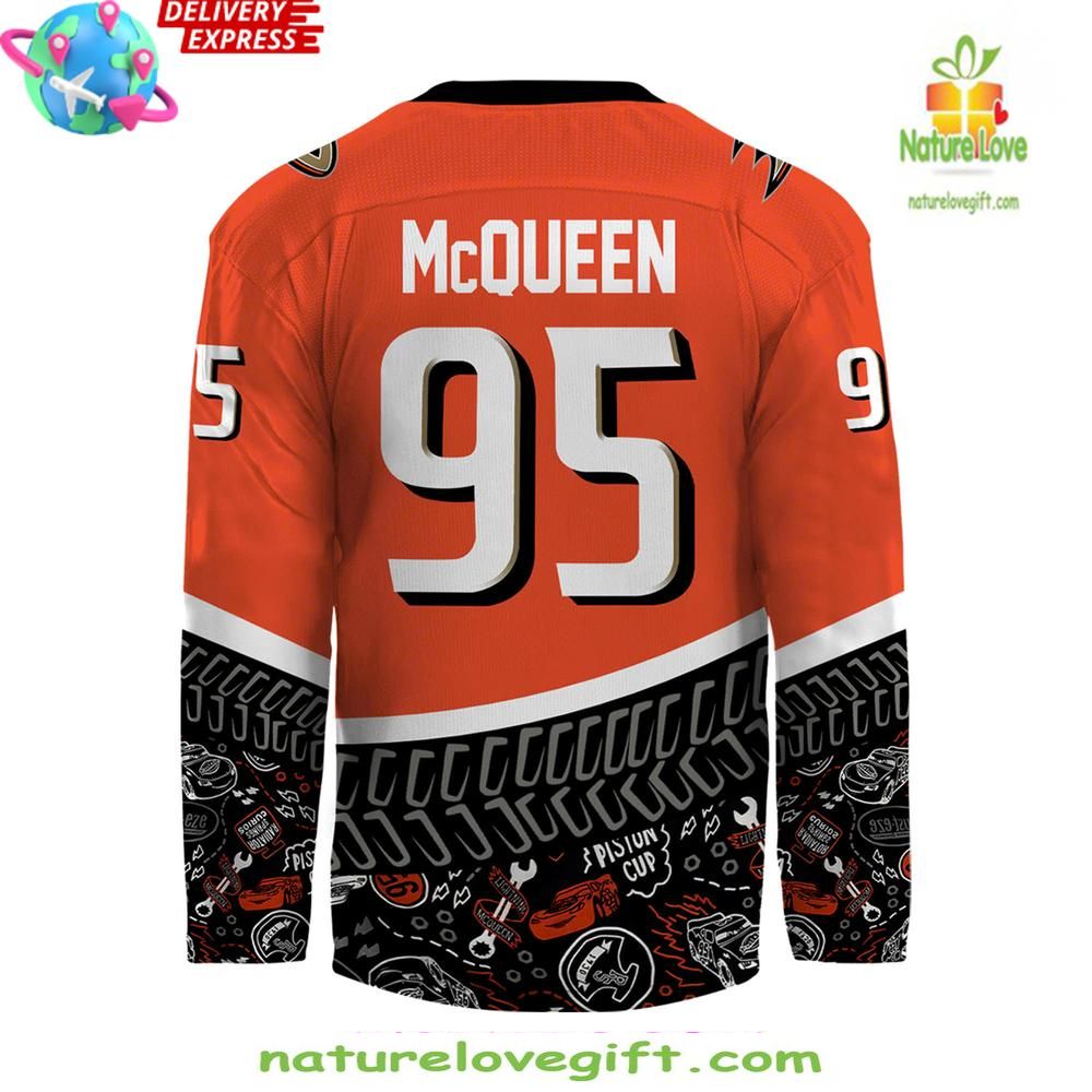 Lightning McQueen Anaheim Ducks 2025 Hockey Jersey details:
