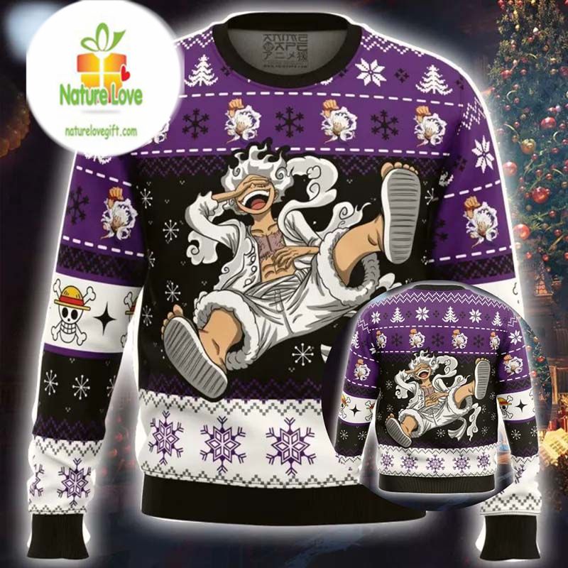 Luffy Gear 5 Sun God Nika One Piece Ugly Christmas Sweater details: